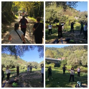 Naše starije dame su zajedno sa profesoricom kineziologije odradile jutarnju tjelovježbu, medicinsku gimnastiku i nordijsko hodanje prilagođeno starijim osobama.